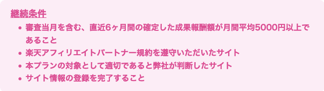 「審査月を含む、直近6ヶ月間の確定した成果報酬額が月間平均5000円以上であること」